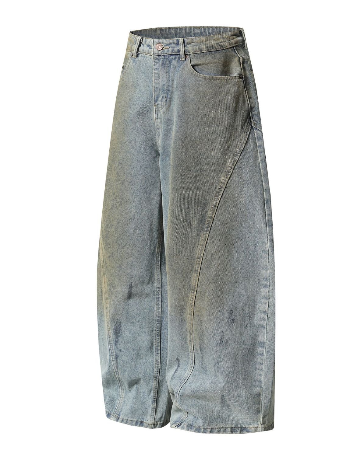 Confeccionado en denim 100% algodón con lavado gris cielo, este pantalón logra un equilibrio entre la estética vintage y la sofisticación minimalista contemporánea.