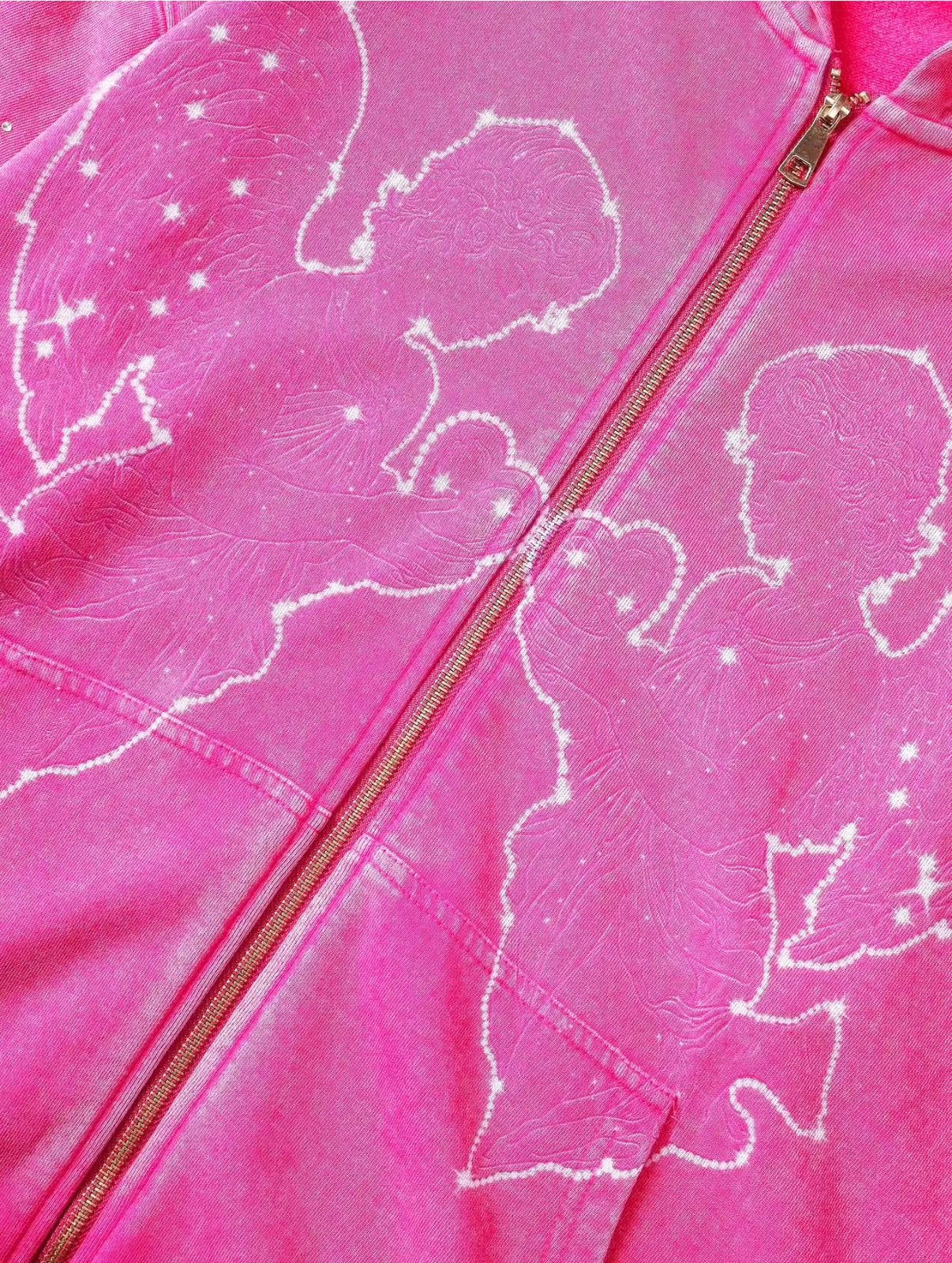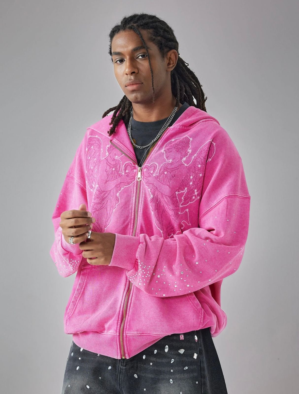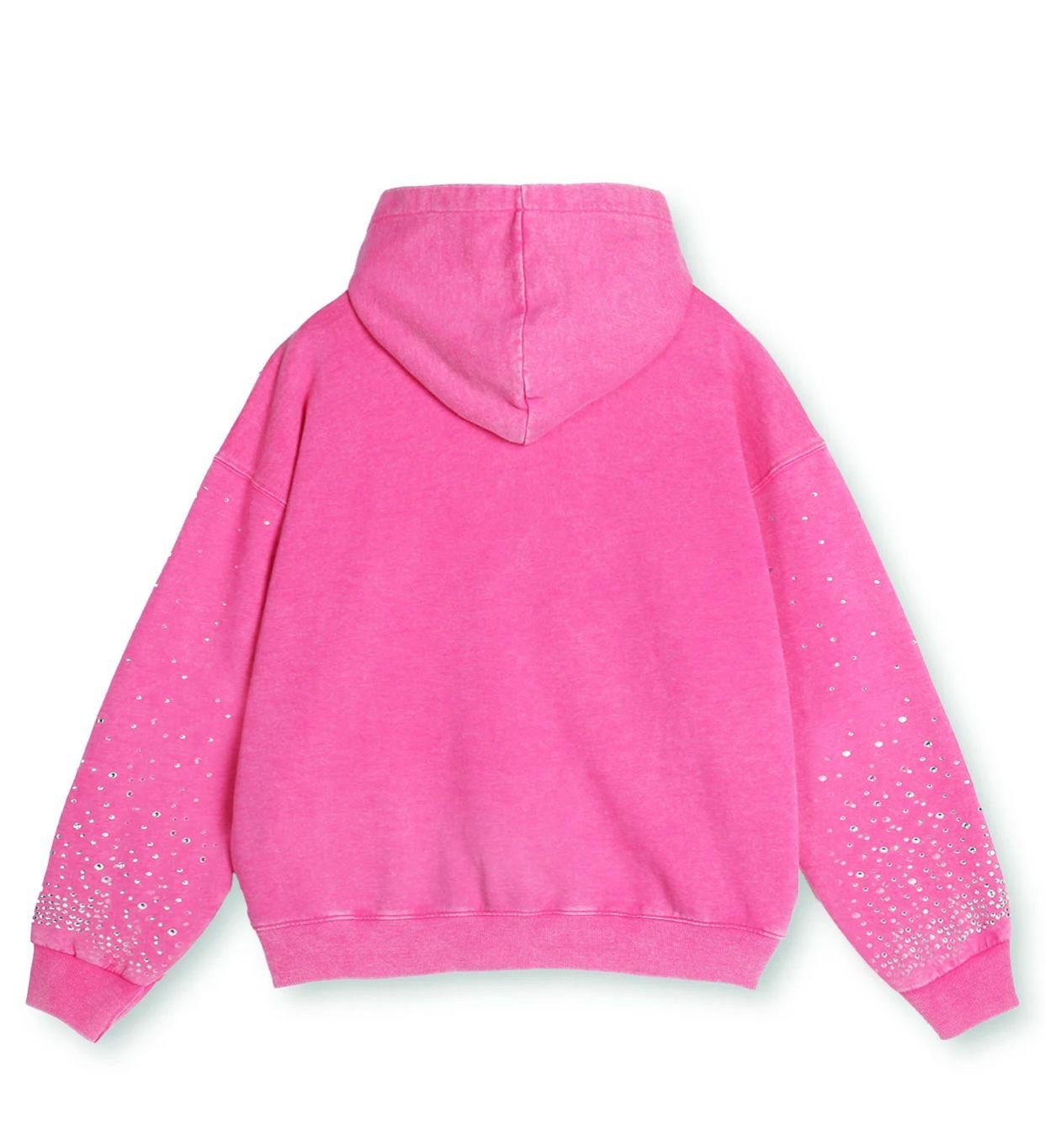 Inspirado en la estética Y2K y el estilo urbano colombiano, este conjunto fusiona la sensualidad con la comodidad: hoodie cropped en tono rosado con detalles bordados, shorts deportivos en rojo vibrante y el toque final de actitud con el pañuelo y las cadenas doradas.